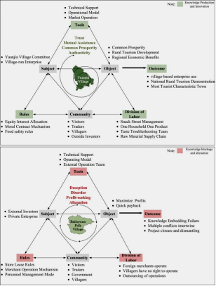 在乡村振兴的大背景下,成功旅游地的发展模式常被各地争相模仿,但为何失败的仍是大多数?研究以陕西省内两个文化背景相似、地理位置邻近的典型旅游乡村袁家村与白鹿原民俗村为案例,进行长达8年的跟踪调研。研究发现,白鹿原民俗村虽然积极学习袁家村的商业布局、产品形态等“显性知识”,却最终走向衰落。其根本原因在于,乡村旅游成功并非仅在于表象的商业逻辑,更在于一种深层次的、根植于本土的在地知识实践,这包含了村民间的信任基础、共同富裕的集体目标以及社区成员的协同治理机制。袁家村的成功,正是建立在这样一个稳定、健康的活动系统之上。相比之下,由外部资本主导、忽视本地社区利益与信任、破坏乡村社会原有关系逻辑的白鹿原民俗村,最终出现“水土不服”,走向知识异化与系统崩溃。研究深刻揭示了乡村旅游的可持续发展绝非简单的模式移植,而是一场需要深度融入地方社会文化、尊重并激活在地知识的系统工程。