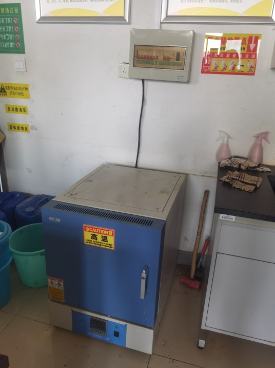 5)马弗炉没有贴高温警示,上面堆放易燃物品及其他仪器(已整改)。