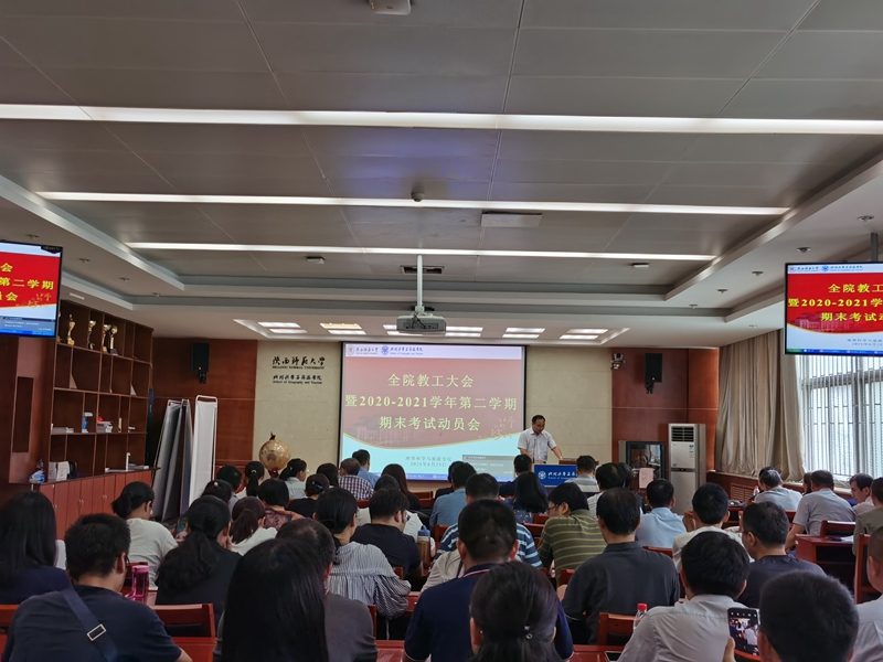 6月23日下午,学院在格物楼一层报告厅召开全院教工大会暨2020-2021学年第二学期期末考试动员会,安排部署相关工作。会议由院长周正朝主持,全体教工参加。