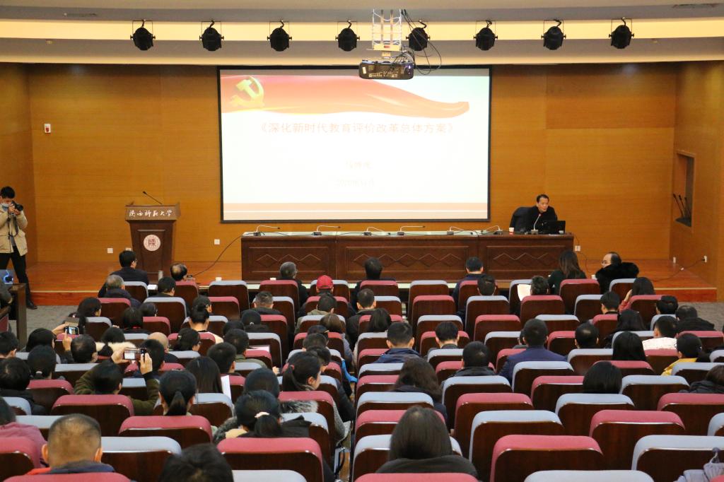 党委副书记、纪委书记,学校深化教育评价改革工作组组长马博虎为联系学院做专题报告。党委副书记王永安以及学工系统理论学习中心组全体成员受邀参加报告会。
