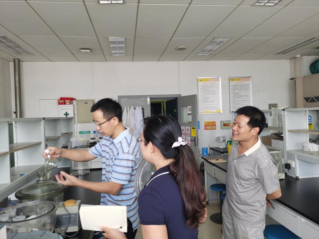 实验室的安全情况进行了一次全面的突击检查。总体来看,学院实验室运行状态良好,实验室工作人员操作规范,防护措施到位。但也有个别实验室存在固体废弃物堆放过多、气体钢瓶没有固定、做实验的同学没有穿实验服等问题,造成安全隐患,检查组及时指出并要求纠正整改。