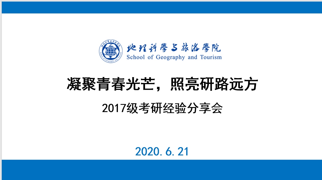 地信专业的闵晨同学结合地信专业的学科特点,从考研政策、考研形势、考研规划三个方面分享了自己的研路历程,他介绍了地信专业的必读书目、各科平均分以及时间规划等内容。王登寒同学来自2016级地理科学(创新实验班),成功考取蘑菇视频