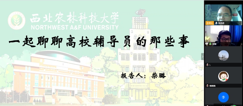 2020届毕业生提升竞业能力,4月26日下午,学院“校友归来话成长”第五场高校辅导员和管理岗位经验交流会举行。本次邀请了现任西北农林科技大学辅导员柴璐、2019届环境工程硕士生、西北大学辅导员孟庆彬、2019届人文地理学硕士生、西北大学人力资源部顾恺、2019届国土资源学硕士生、蘑菇视频