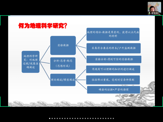 最后,庞奖励教授结合自身丰富的科研经验,说明了地理学人的特长在于野外技能,也在于敬业踏实、脚踏实地、知行合一的科研态度,这也是同学们在科研学习中应该着重培育的优良品质。