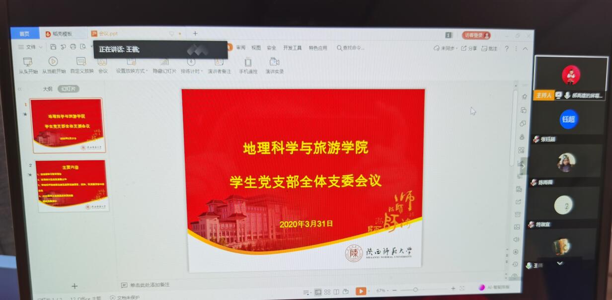 首先,王蓓蓓老师就2019年度学生党支部党委收缴情况和党员捐款情况进行了通报。并带领大家集体学习了《习近平总书记给北京大学援鄂医疗队全体“90后”党员的回信》、《关于全面加强新时代大中小学劳动教育的意见》等重要文件,并要求各学生支部要在集中开展学习文件精神,教育引导青年学子勇挑重担、继续奋斗,积极在劳动中锻炼成长,并就开展“绿色清明节·云端祭先烈”主题党日活动做了安排。