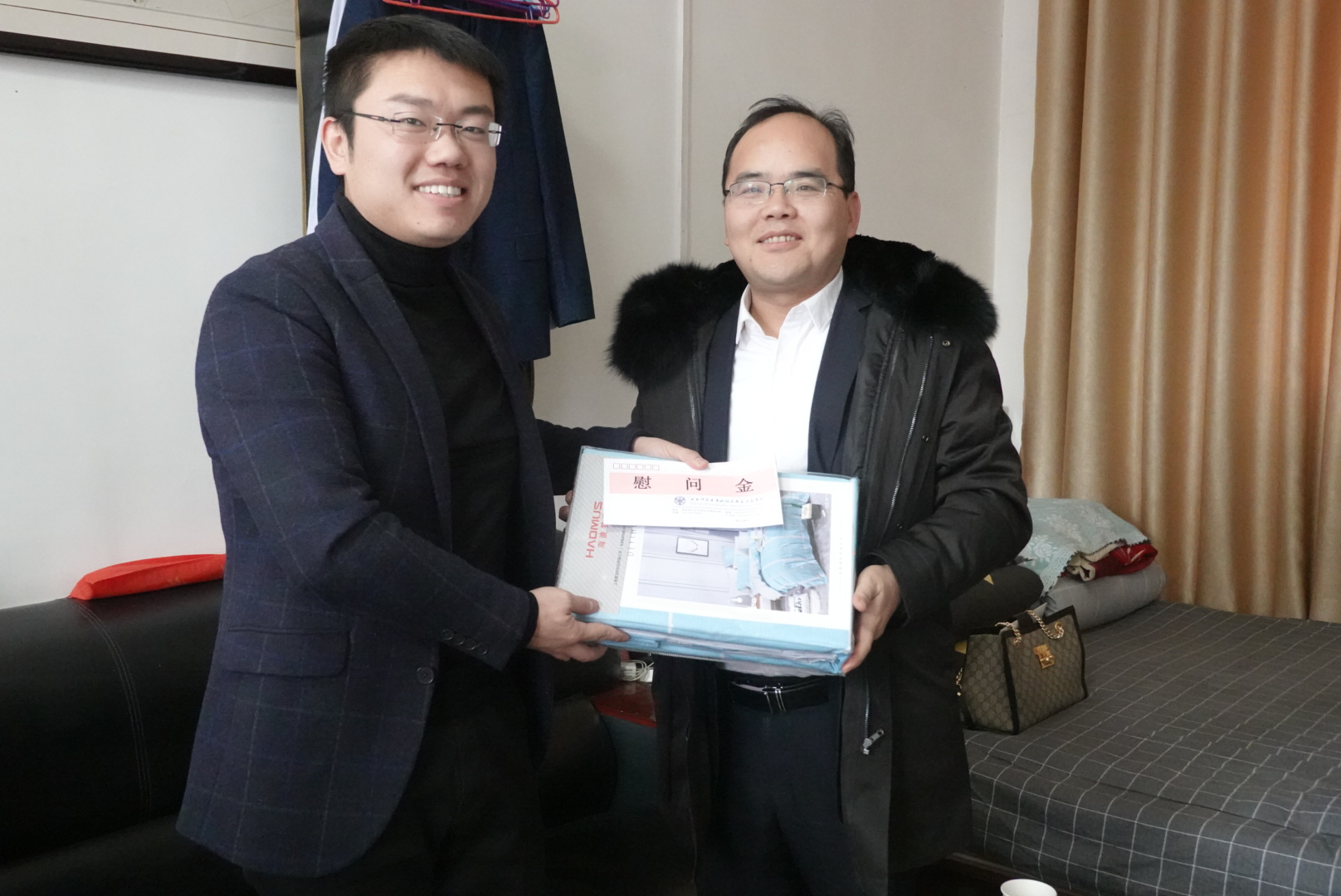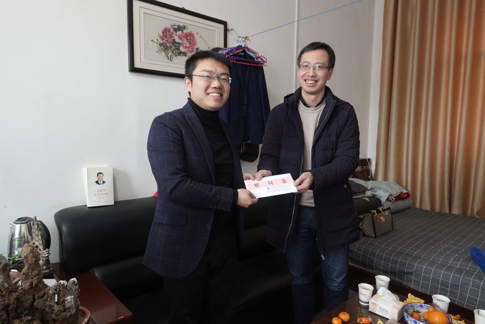 在淳化县官庄镇,镇长王建利热情接待了学院一行。通过交谈详细了解了学院2017届研究生、陕西省首批选调生石彬楠的情况。挂职镇长助理两年多以来,通过基层的锻炼,石彬楠从文质彬彬的“书生”逐渐成长为接地气的基层干部,他参与了皇城村的危房改造,积极帮助包村贫困户解决生产生活问题,他还通过招商合作推动了中药材产业园在当地的建设。两年来的踏实工作,当地群众对石彬楠的工作给予了高度的肯定和认可。郝高建代表学院给石彬楠送去了新春的慰问,他希望石彬楠发扬吃苦耐劳的“地科精神”,继续在基层中磨练自己,要发挥自身优势,调动身边资源,在为群众服务的实践中不断提升本领。