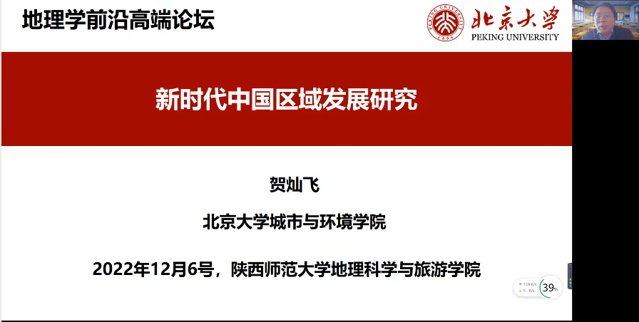 和西北国土资源研究中心联合主办的地理学前沿高端论坛召开,12月2日论坛采用线上+线下结合的形式,线下主会场设在蘑菇视频