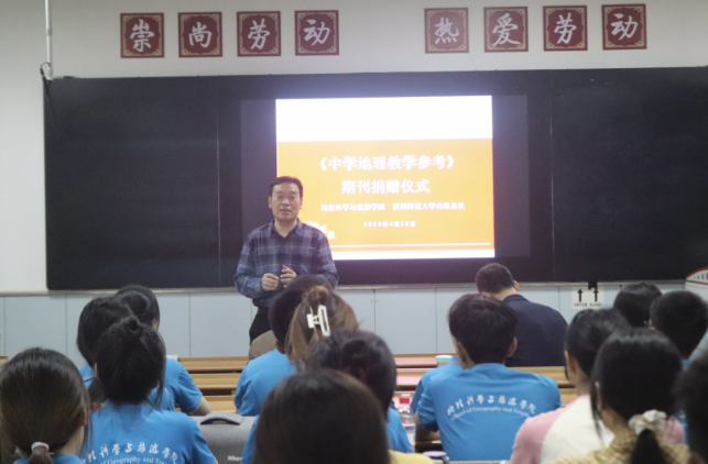 联合举办定期捐赠书刊活动,《中学地理教学参考》编辑部向2021级地理卓越班全体同学捐赠《中学地理教学参考》。捐赠仪式在雁塔校区教学楼举行。出版总社党委书记李有谋、学院院长李君轶、《中学地理教学参考》主编雷鸣、地理科学卓越班班主任户清丽、辅导员张娜及2021级地理科学卓越班全体学生参加,副院长王宁主持仪式。