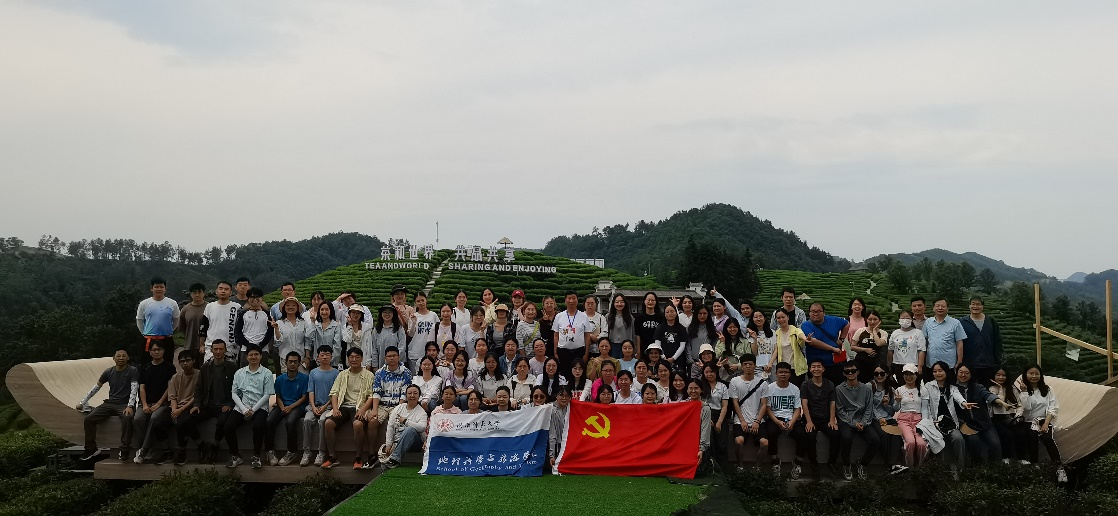 在陕西省平利县蒋家坪村女娲凤凰茶叶现代化示范园区结合专业实习开展特色主题教育实践活动。本次活动由学院老师查小春、周忠学、胡光印、朱冰冰、曹立国、曾小敏、尚溦、程颖带队,蒋家坪村前任村支书主讲,地理科学支部部分党员、学生党团共96名师生共同参与。
