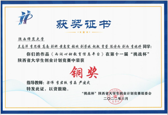 启动“挑战杯”大学生创业计划竞赛校级赛事以来,学院共选送21件作品报名参赛,参与学生超过200人。经过学校初审选拔、复赛、决赛评审,《雨润心甜教育信息平台》项目荣获校级银奖,《更喜岷山—游戏赋能IP打造文旅消费新场景》荣获校级铜奖。其中《雨润心甜教育信息平台》项目代表学校参加省赛并荣获省级铜奖。蘑菇视频