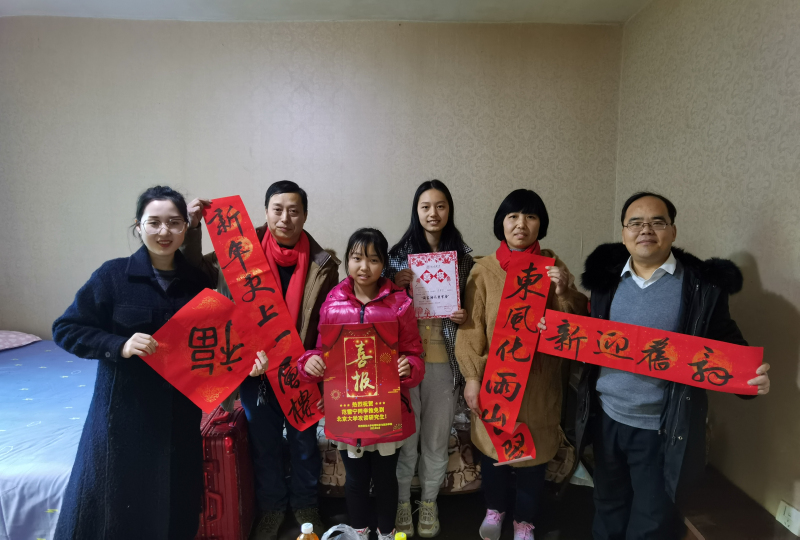 1月16-17日,学院党委副书记郝高建、辅导员张思豆、刘舒天、白克阿力、张钰超等一行赴西安市莲湖区、未央区、灞桥区、蓝田县、长安区、周至县等地的获奖学生和困难生家中进行家访,并亲自将喜报、慰问品和新春礼包送到学生家中。通过走访,向家长通报了学生在校取得的优异成绩,将获奖喜报送到家长手中,并与家长就资助、服务等方面作了交流,并做好家访记录,为精准资助育人提供可靠一手资料。在走访了的部分家庭经济困难学生家长,与学生及学生家长进行了亲切地交谈,深入细致地了解了学生家庭情况,并向家长交流了学生的在校表现情况。同时,向学生家庭宣讲了党和国家以及学校的资助帮扶政策,鼓励学生树立自立自强、锐意进取、奋斗拼搏的人生态度。