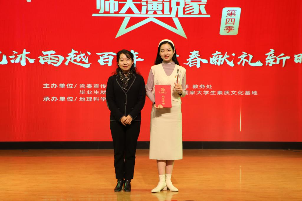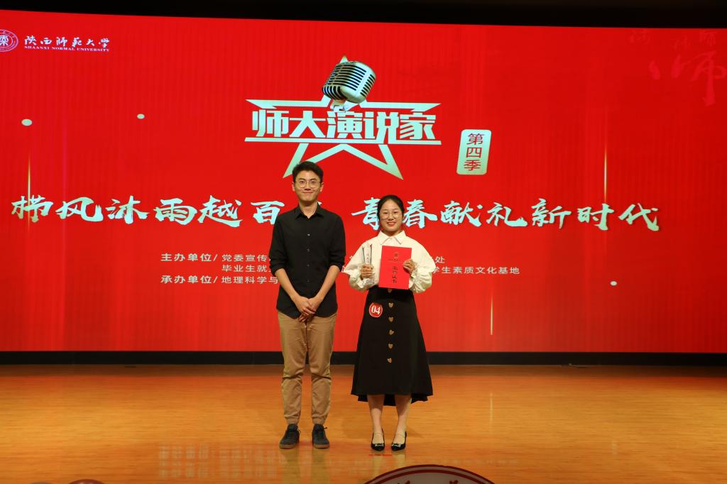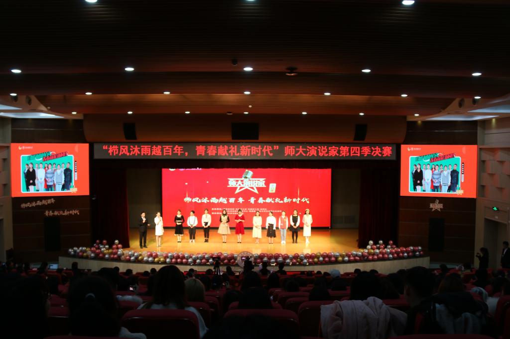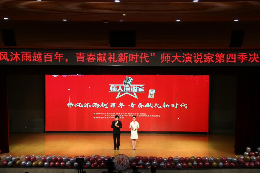 11月26日晚,由党委宣传部、党委学工部、党委研工部、教务处、毕业生就业指导服务中心、校团委、国家大学生素质文化基地主办,我院团委承办的“师大演说家”第四季暨“栉风沐雨越百年 青春献礼新时代”主题演讲比赛决赛在长安校区新勇活动中心学生剧场举行。