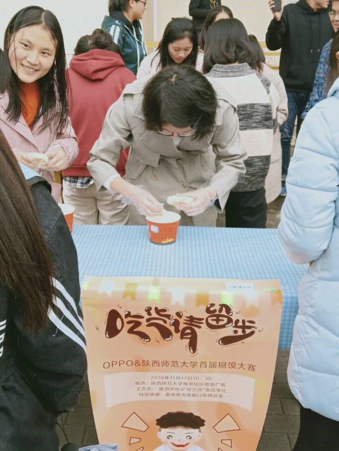 旅游学社在喷泉广场与绿之洲联合举办了“行也,食也”活动暨陕师大第一届掰馍大赛。这次比赛特别邀请了墨香斋贾家楼第五代传人白师傅作为评委,设置20个参赛名额。