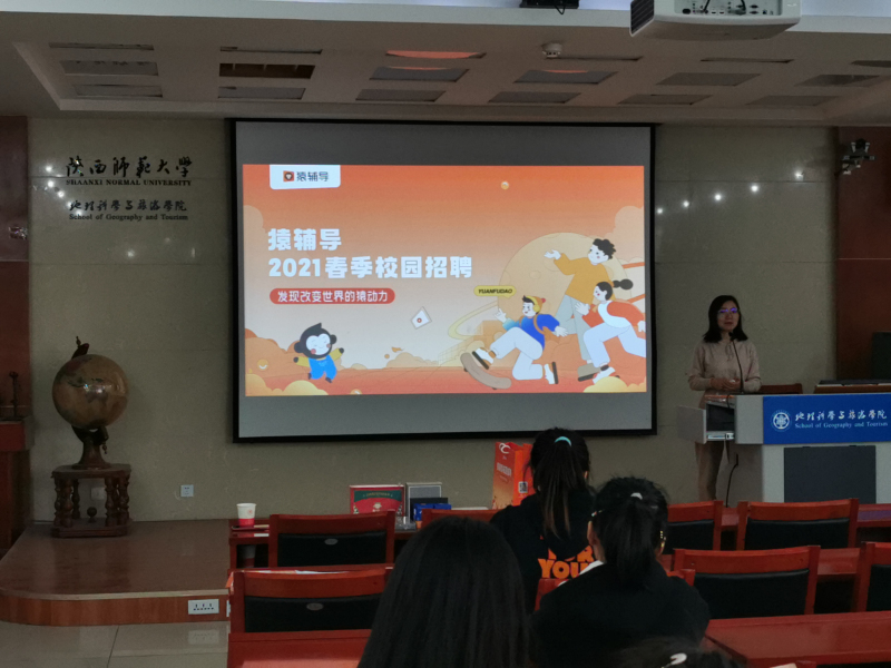 在格物楼一层报告厅召开了猿辅导2021届春季招聘会就业招聘会。