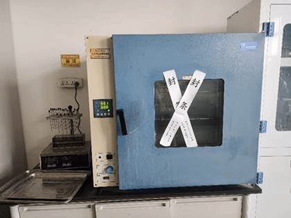 3.1604(安全员:邵天杰老师)烘箱上不可摆放塑料制品等易燃物品;已报废高温设备马弗炉封条被私自扯下。