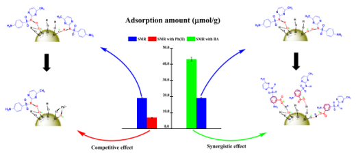 此外,该研究团队针对实际水体环境中不同有机无机污染物共存导致的复合污染问题,探究了在磺胺类抗生素和重金属复合污染的情况下,二者在氧化矿物和碳质材料上的协同和拮抗去除作用及相互影响机制,揭示了C