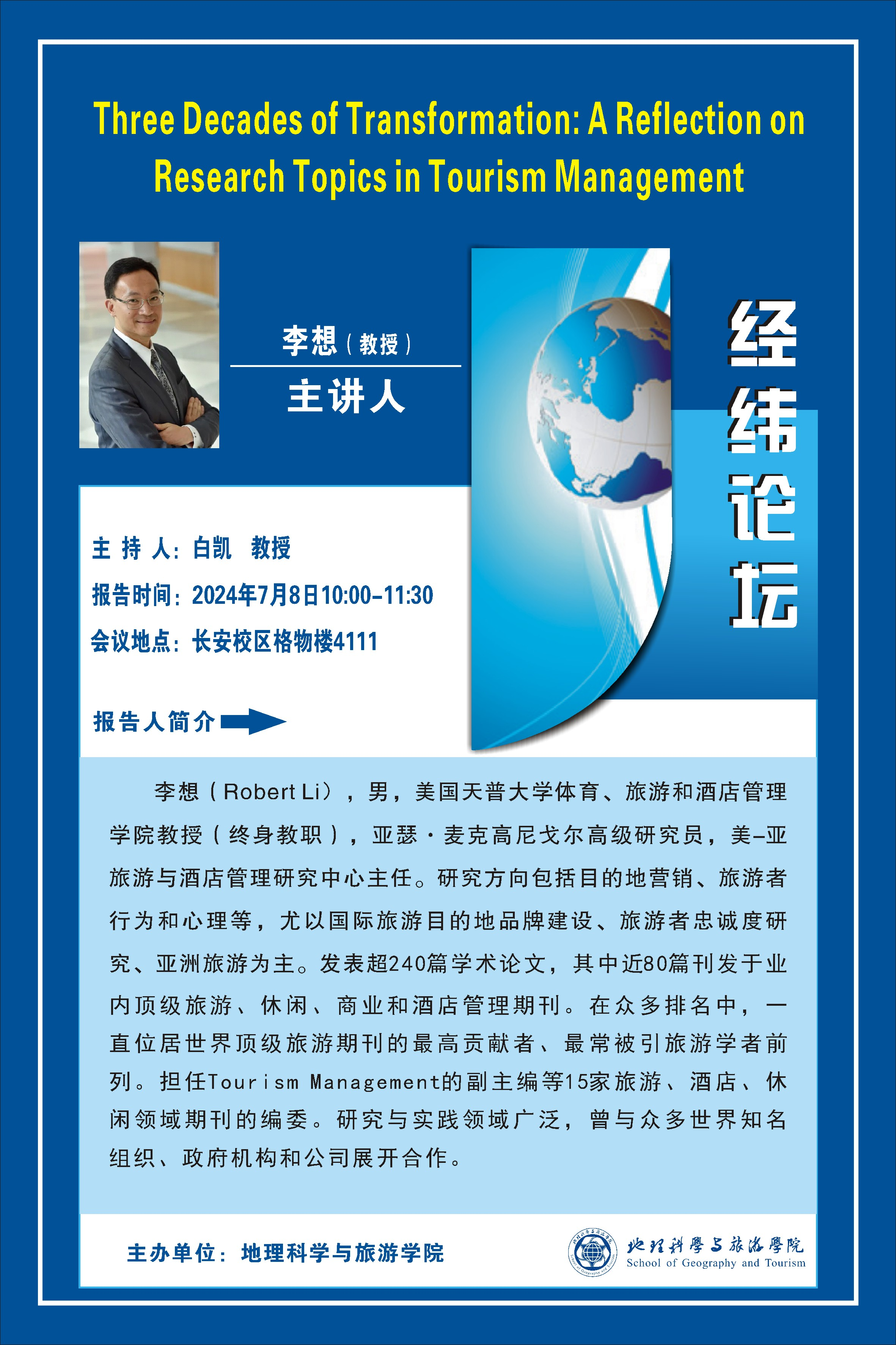 经纬论坛--Three Decades of Transformation: A Reflection on Research Topics in Tourism Management